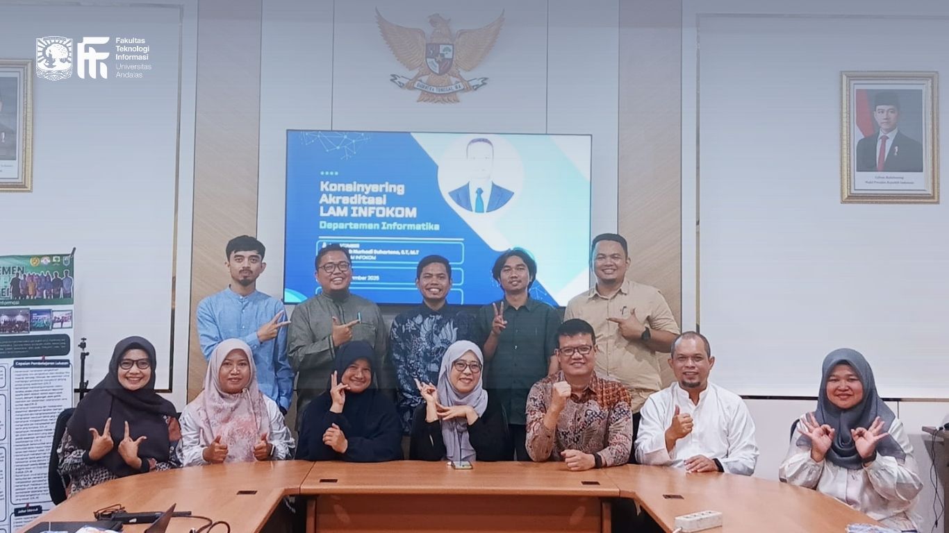 Padang, 18–19 Desember 2025 — Departemen Informatika, Fakultas Teknologi Informasi (FTI) Universitas Andalas melaksanakan kegiatan Konsinyering Akreditasi LAM INFOKOM yang berlangsung selama dua hari, pada Kamis–Jumat, 18–19 Desember 2025, bertempat di Ruang Rapat FTI Universitas Andalas.